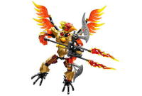 | ヒグマ族の強敵シロクマ族が、またもやチーマに侵入したぞ!ハゲワシ族のボーノンの助けをかりて、アイスクローが盗んだ「チ」を持って、超高速アイススレッジに乗って逃亡中だ。ファイヤーハーネスとファイヤーウィングでブラビックをパワーアップしたら、超カッコいいランブルベアーに乗って追いかけろ。ボールシューターを撃ちながら、アイスクローのフリーズキャノンからの攻撃をよけたら、ランブルベアーを「ファイヤー・チ」パワーモードからファイターモードに切り替えろ。ブラビックの強力なバトルマシーンのうで、あし、頭を戦闘ポーズにして、敵の戦士をあっとうしよう!ブラビック、アイスクロー、ボーノンの3体のミニフィギュアと武器付き。 |