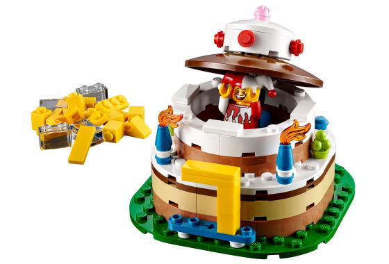 | バースデーケーキの前に年齢(1~99)をブロックで作ろう!ろうそくの炎を吹き消して、中からはクラウンが出てくるよ。 |