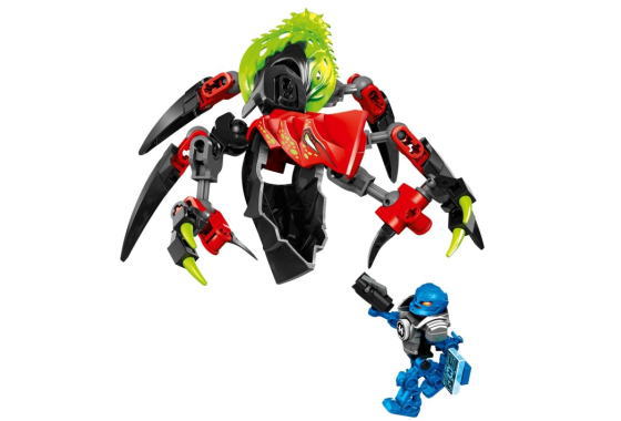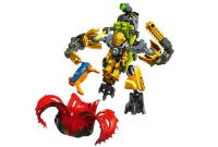 | エヴォ、6足ウォーカーに乗ってレスキューに向かえ!ストーマーがクイーン・ビーストにつかまった。背中のまゆに入れて究極のビーストに変えてしまうつもりだ。クイーンのたくさんの目はファーノもとらえた。毒ヅメを使ってファーノもまゆに入れようとしているぞ。ウォーカーのシューターとフリックミサイルを発射して敵を撃退せよ。おそろしいクイーンを倒したら、レスキューポッドで仲間を安全に輸送しよう。ファーノ、エヴォ、ストーマーのミニロボットと武器付き。 |