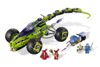 | ゼンとジェイが黄金のファンパイア杖を手にしたが、敵から逃げ切れるかな。ファンパイアヘビヘビ族の将軍、ファントムが送った仲間の兵士、ファンダムがまちぶせしているぞ。ゼンとジェイはふつうのスノーモービルでファンダムのヘビヘビ・トラックから逃げ切れるかな!スノーモービルのアイス散布機を動かせば、どんな地形の問題も解決できる!