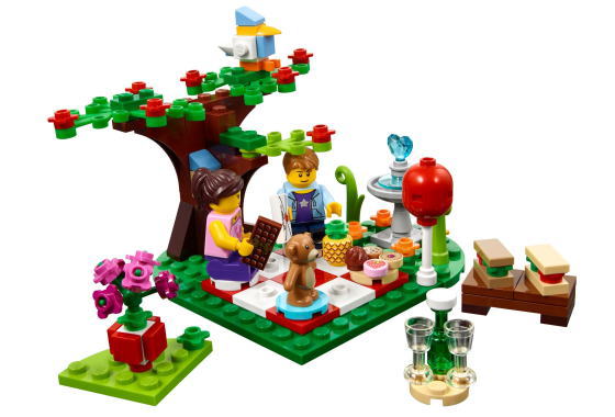 ピクニック用毛布、赤い風船、花と食べ物のブーケのアクセサリーなどロマンチックなピクニックに必要なものすべてが含まれています。レゴファンに季節の素晴らしい贈り物をお届けします。 |