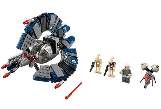 | ヴァルチャー・ドロイドで惑星コルサントの上空から偵察しよう。新型スプリングシューターやバズ・ドロイドで敵の勢力に立ち向かえ。陸上におりたら、歩行モードに切り替えて地上戦に備えよう。ニモーディアンのミニフィギュア、バズ・ドロイドとパイロット・バトル・ドロイドのフィギュア、ブラスターピストル付き。 |