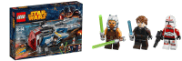 | Vウイング・スターファイターにはコックピット、飛行・着陸モードを備えた回転翼、新型デュアル・スプリングシューター、アストロメク・ドロイドが搭載されている。惑星ムスタファーに向かい、負傷したアナキン・スカイウォーカーをシスのもとへ返そう。ブラスターピストルを持ったVウイング・パイロットのミニフィギュアとアストロメク・ドロイド付き。 |