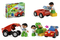 | デュプロはじめてセットには59個の色とりどりの基本ブロックが入っています。4枚の組み立てカードを見ながら、楽しくモデルづくりができます。男の子の人形やイヌ、窓、イス、レジなども入っていて、楽しく遊ぶことができます。便利な組み立てガイド付き。 |